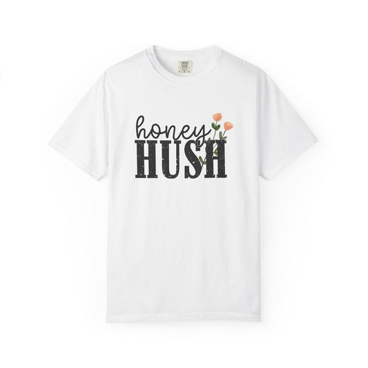 Honey Hush Floral T-Shirt — Cozy Script & Bold Vintage Block Tee