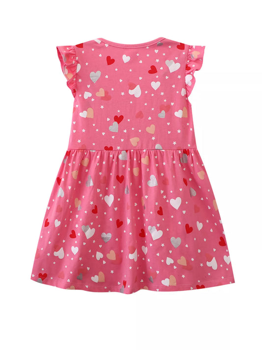 Children's Heart Print Ruffle Sleeve Casual Dress