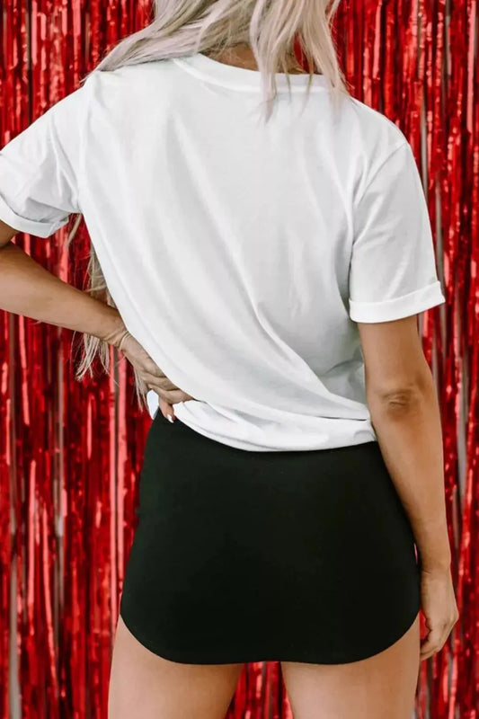 Valentines Bow XOXO Heart Sequin Patched Loose T Shirt