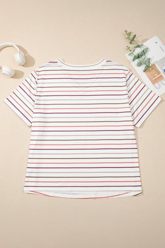 Plus Size Stripe V-Neck Short Sleeve Tee