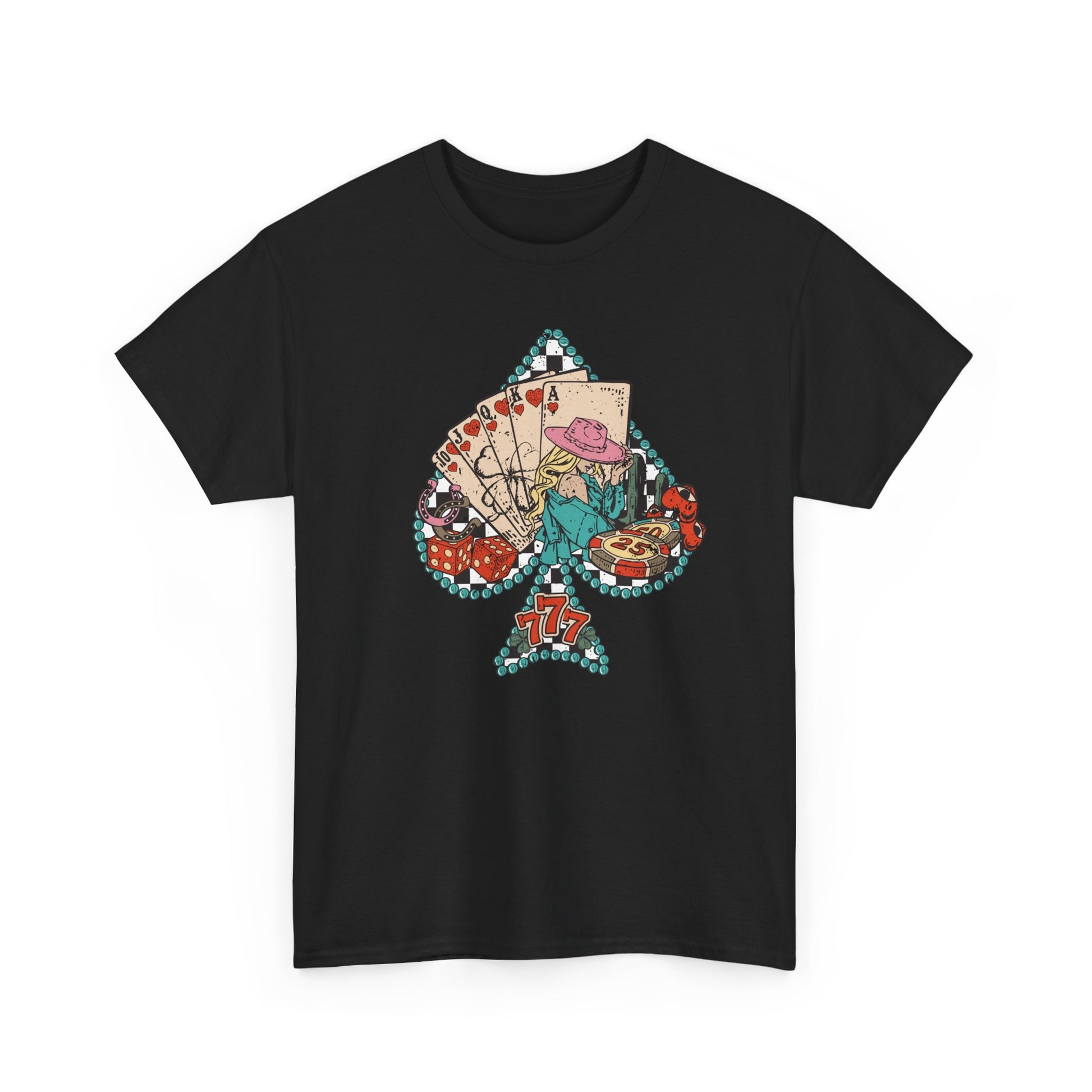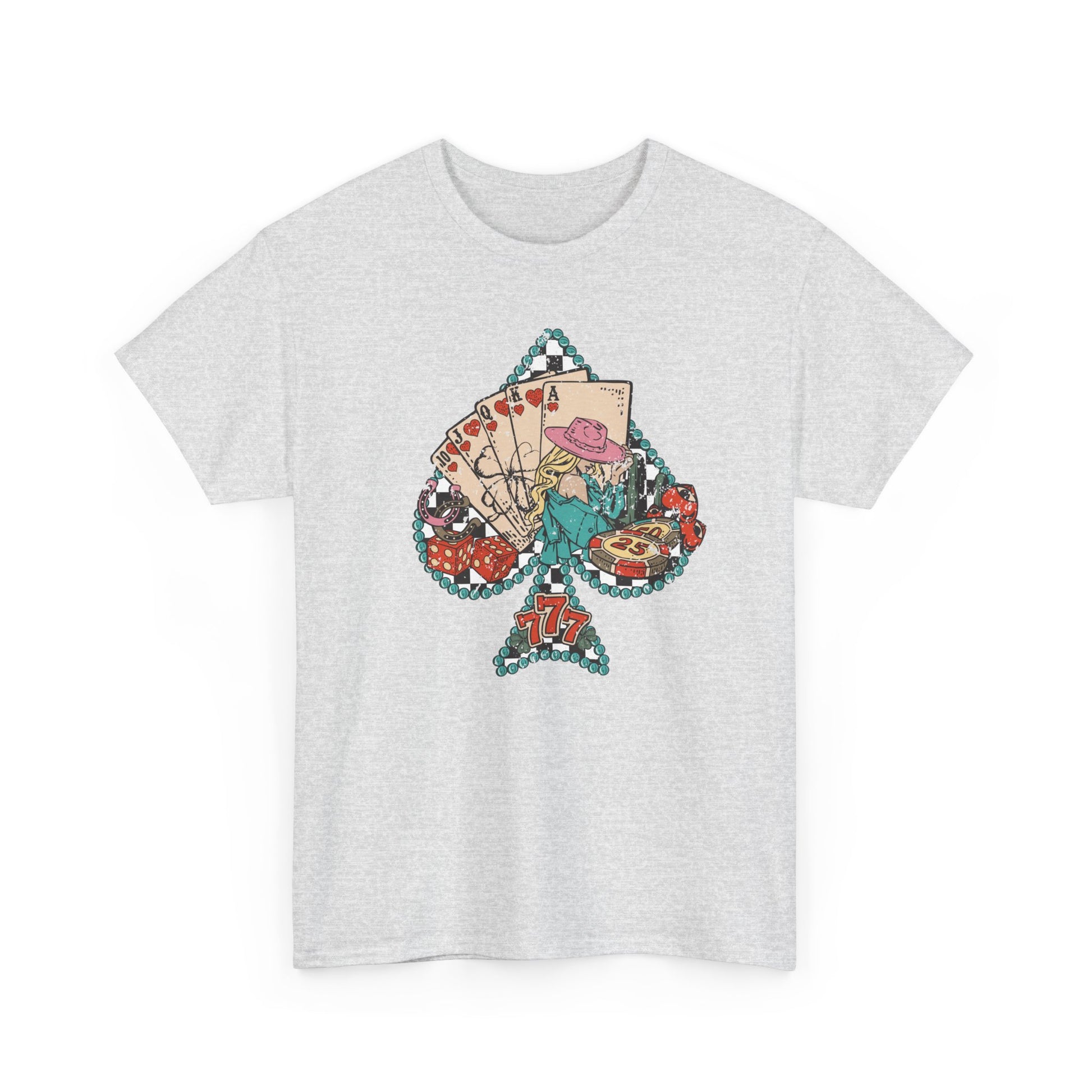 The Spade Floral Tarot Vintage Tee blends bold playing card graphics with blooming roses and celestial charm — perfect for the wild hearts and free spirits.