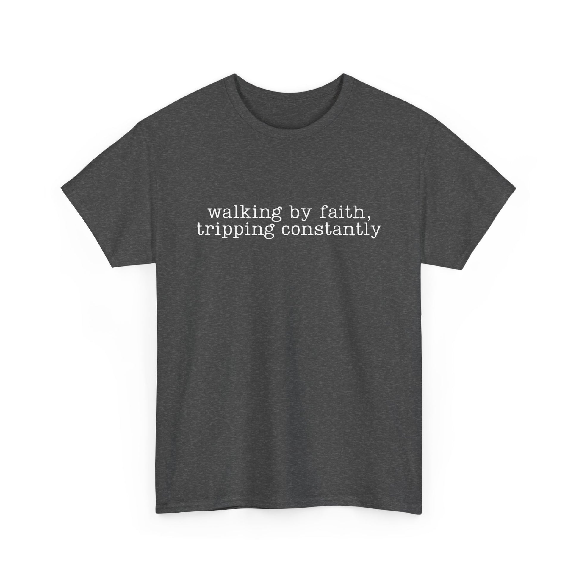 The Walking by Faith, Tripping Constantly crewneck tee adds a little humor to a powerful truth. Featuring a playful phrase with relatable charm, this tee is perfect for those who lean on faith, laugh at themselves, and keep moving forward one step at a time.